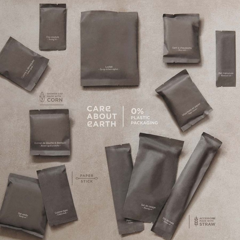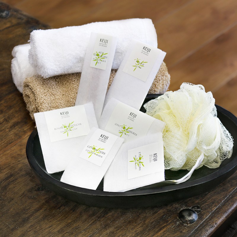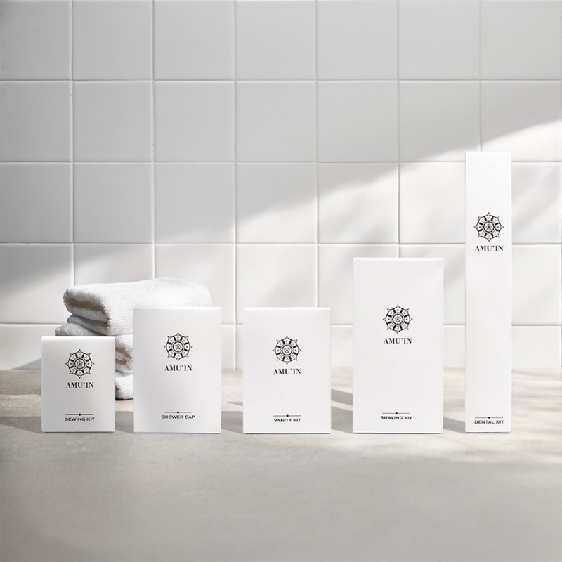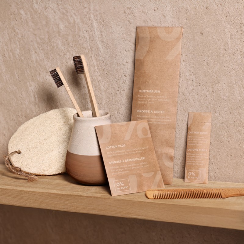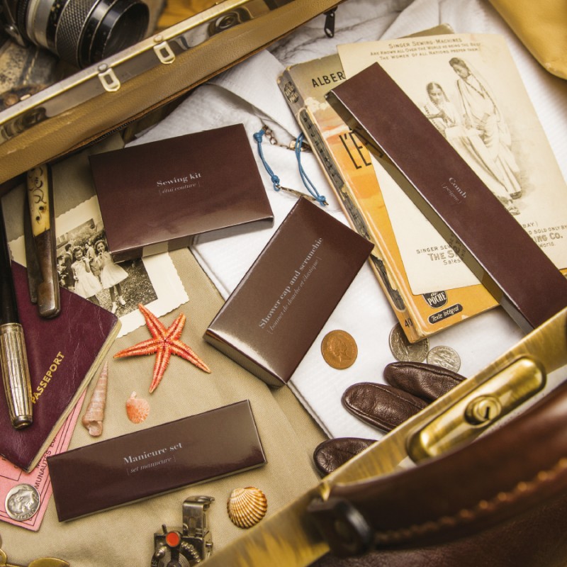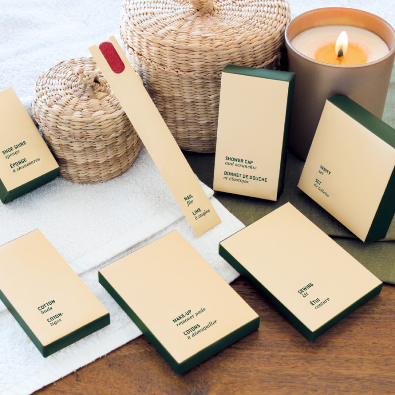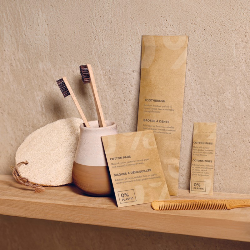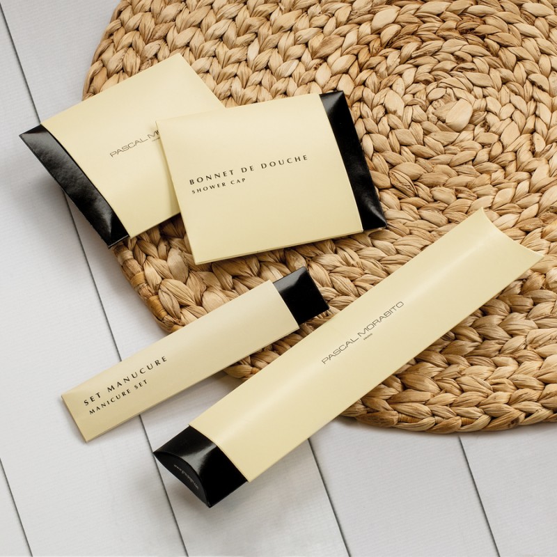 Vegetable bath sponge - Slippers - Comb - Toothbrush - Dental set - Tissues - Nail file - Manicure set - Cotton swabs - Makeup remover pads - Shoe mitt - Sewing kit