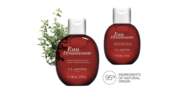 Eau Dynamisante, at the heart of nature, a unique blend of scented combination of essential oils and 7 plant extracts. Clarins excels in the art of using the aromatic and sensorial powers of essential oils… With its bouquet of citrus, cypress and delicate woody notes, Eau Dynamisante perfectly symbolizes this expertise. Its scented combination of orange, lemon, lavender and patchouli's essential oils give it a fresh, exhilarating scent which is subtle yet lingering and which revitalize, lifts the spirits and energizes.