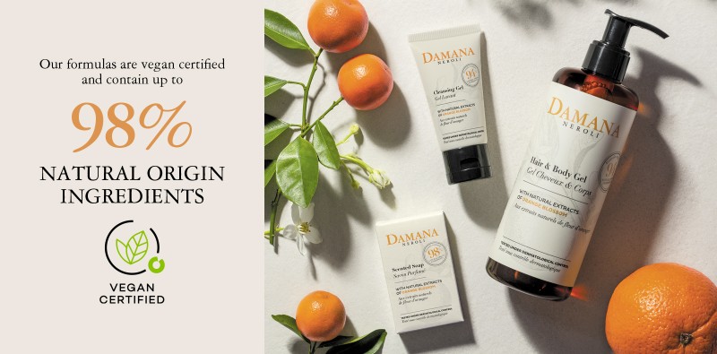 DAMANA® Néroli brings a delicate floral touch to the DAMANA family, offering products with soothing, natural extracts of orange flower, the true essence of sunshine.