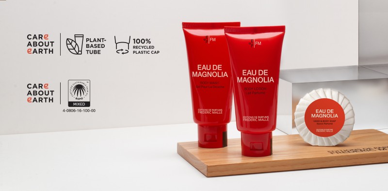The line is perfumed with ‘Eau de Magnolia’ a blooming citrus fragrance created by the famous nose Carlos Benaïm. Unlike other white flowers that exude opulence, magnolia’s scent is citrus-fresh. Carried by a woody undercurrent, a magnified citric balance of bergamot, lemon and grapefruit tunnels into focus towards darker notes of oak moss and patchouli in an olfactory representation of sunshine and its shadow.