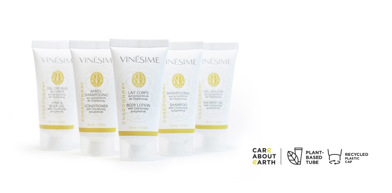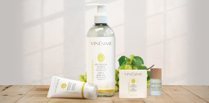 Vinésime amenities inspired by « Le Clos Chardonnay » cuvée, subtly perfumed with notes revealing the grace, the finesse and the freshness of this grape. This hotel line appeals the senses in a delicate blend of depth and subtlety.